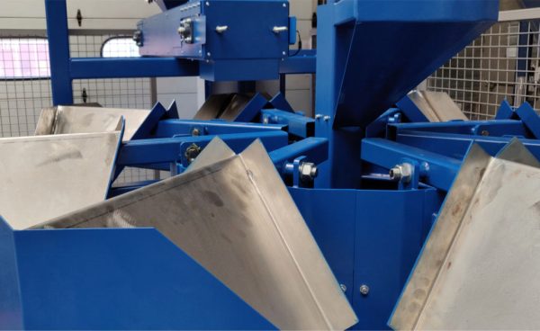 Для обработки материала ленточный питатель транспортирует материал на (вращающуюся) карусель с делительной головкой. Делительные головки направляют падающий материал в каждую позицию, где он собирается ковшом.