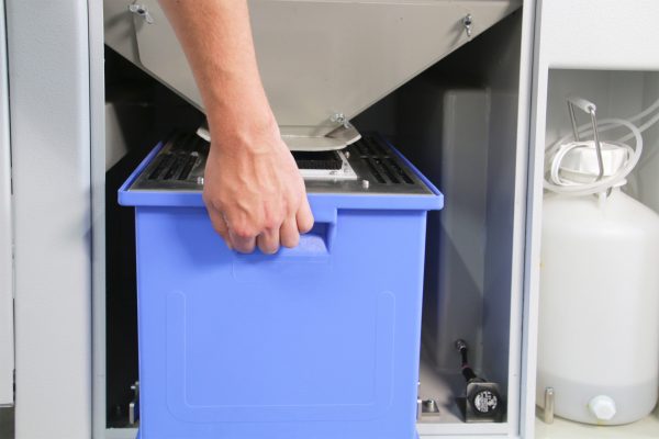 - После окончания фрезерования готовая проба ставится на приемный столик и ее можно забрать из станка вручную или автоматической системой.