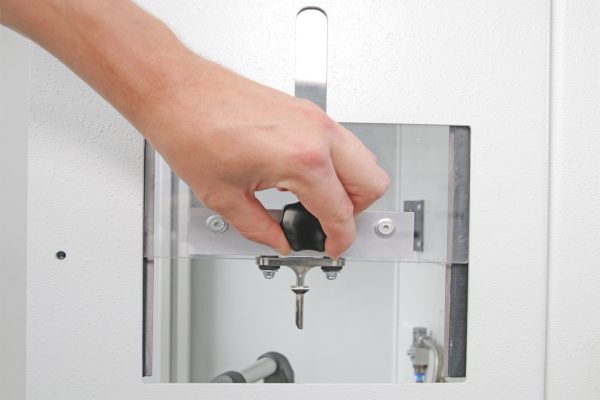 - Обработка проб: вручную или автоматической системой проба устанавливается на приемный столик. После запуска станка проба автоматически центруется и зажимается.