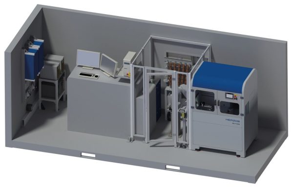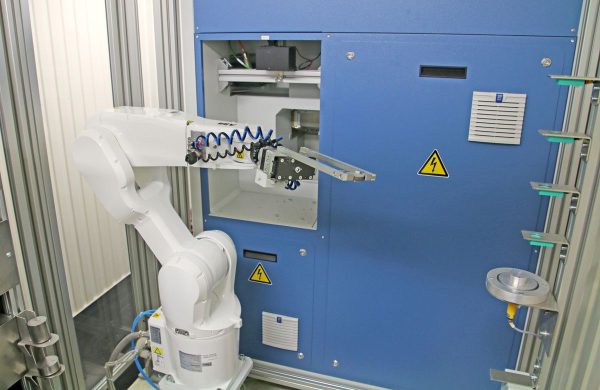 - Оператор, робот или конвейерная система помещает образец в подготовительную позицию. Поскольку HS-F1000 фрезерует нижнюю сторону образца, то образец уже находится в заданной нулевой позиции. Поэтому нет необходимости в измерении высоты образца.
