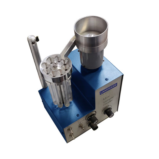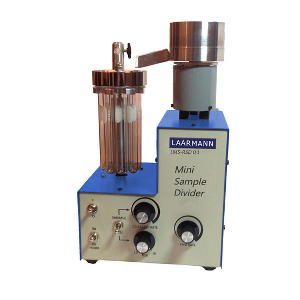 Мини-делитель образцов имеет чашу, под которой установлен вибрационный компонент для увеличения или уменьшения скорости подачи образца.